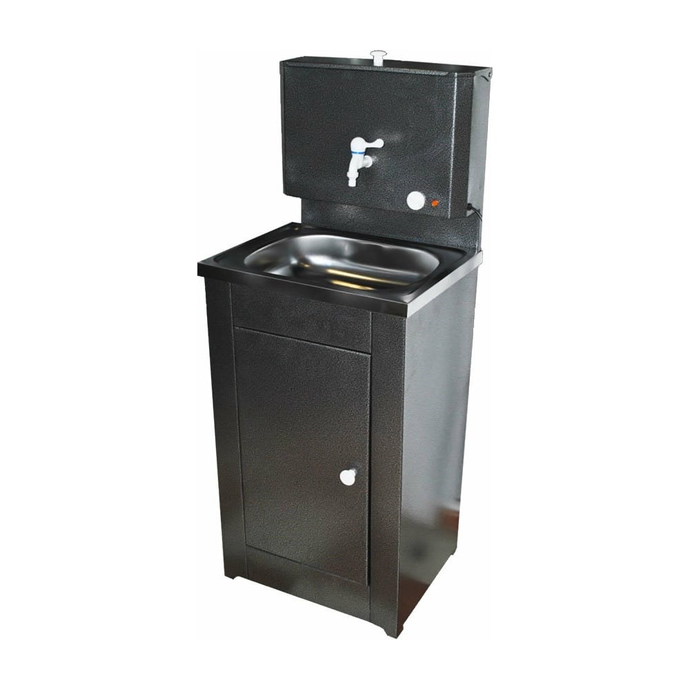 Дачный умывальник Вихрь “Комфорт” изготовлен из нержавеющей стали толщиной 0,7 мм в серебристом цвете. Функциональное устройство можно разместить как в помещении, так и на улице. Бак объемом 14 л обеспечивает длительную подачу воды. При подключении к электросети происходит подогрев воды до 20-65 ℃ не более, чем за 40 мин с помощью ТЭНа мощностью 1300 Вт. Функция плавной регулировки обеспечивает комфортную температуру. Изделие имеет первый класс защиты от поражения электричеством, что гарантирует безопасность его использования. Слив воды осуществляется с помощью подключения к канализации или ведра, которое устанавливается внутрь тумбы. Увеличенная дверца позволяет легко вынимать полную тару. Кран из прочного пластика и накладная мойка из нержавеющей стали обеспечивают длительный срок эксплуатации. Дачный умывальник обладает компактными размерами и весом 10,5 кг. Это позволяет легко транспортировать и размещать его на небольшой площади. Устройство подходит для использования в местах, где отсутствует центральное водоснабжение и канализация: на даче, в гараже, подсобных и хозяйственных помещениях. Эстетичный внешний вид составной тумбы позволяет аккуратно скрывать способ слива воды.