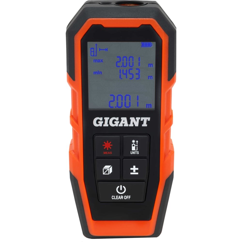 Дальномер Gigant GNT-100 предназначен для измерения расстояний от 0.05 до 100 метров. Для удобства работы в инструменте предусмотрены функции сложения и вычитания, вычисления объема, косвенного измерения, вычисления площадей. Автоматическое выключение дальномера осуществляется через три минуты бездействия. Встроенный электронный уровень. Работает на двух батарейках ААА - их хватит на более 5 тысяч измерений. Модель имеет индикатор заряда батареи. Внимание! Фото товара временно может отличаться от его реального внешнего вида. Верные параметры указаны в технических характеристиках.