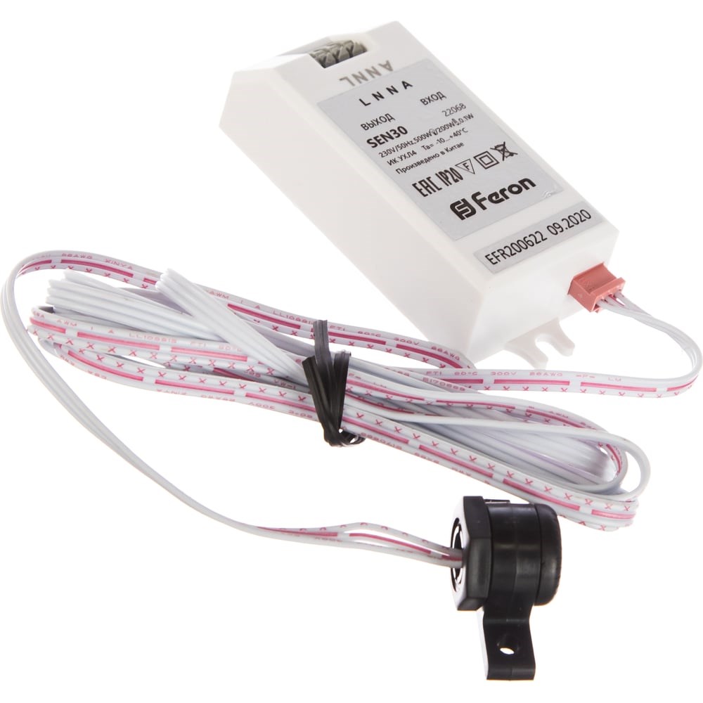 Датчик движения 230V 500W 5-8см 30 белый с 1.5м кабелем Feron SEN30 22068 имеет встраиваемую конструкцию. Срабатывает от движения руки. Имеет простую установку и легкое подключение к сети. Рассчитан на использование внутри закрытых помещений.