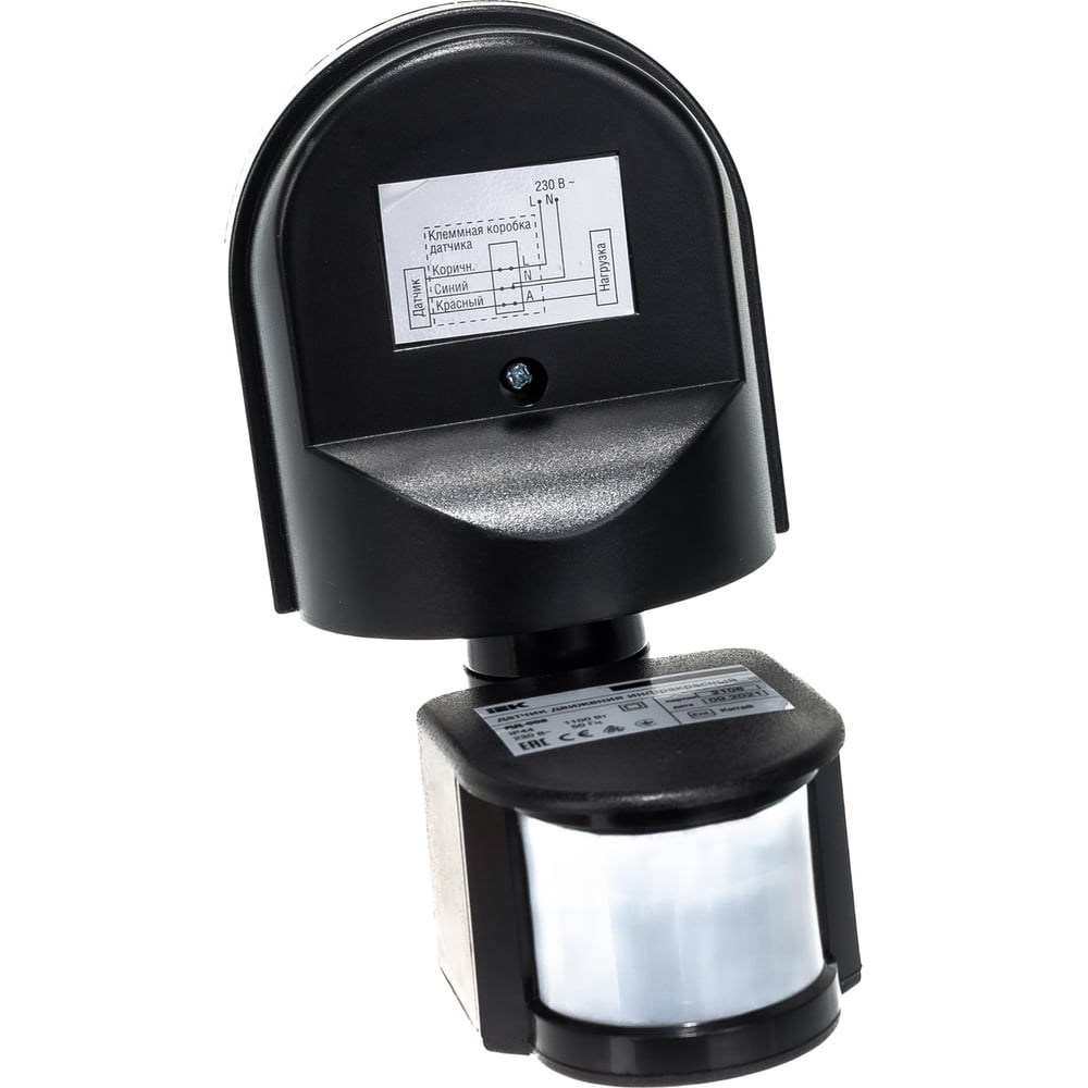 Детектор движения IEK ДД 008 1100Вт угол обз. 180град., дальн. 12м, IP44, черн. LDD10-008-1100-002 предназначен для подачи нагрузки при обнаружении движения. Устройство способно распознавать движение на расстоянии до 12 метров. Корпус из поликарбоната не поддерживает горение и обеспечивает надежную защиту устройства.