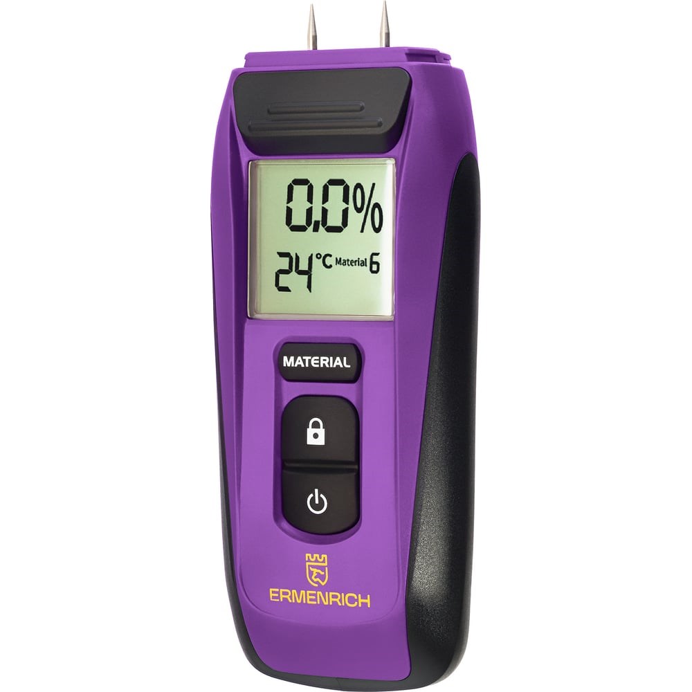 Датчик влажности Ermenrich Wett MW20, он же влагомер, используется для измерения влажности строительных материалов, в том числе цементного раствора, кирпича, штукатурки, древесины и многого другого. Для каждого материала используется свой режим работы, переключение осуществляется кнопкой на корпусе. Измеритель влажности пригодится на любом производстве, работающем с древесиной, а также будет незаменим в столярной мастерской, при возведении загородного дома или при ремонте в квартире. Ermenrich Wett MW20 – это контактный влагомер: измерения проводят два сенсора игольчатого типа, а данные сразу отображаются на встроенном экране. Измерять можно не только влажность, но температуру. Прибор выполнен компактно, поэтому его удобно носить с собой. Управление понятное, отклик сенсоров быстрый. В качестве источника питания используется стандартная батарейка. Есть функция автоотключения при длительном неиспользовании.
