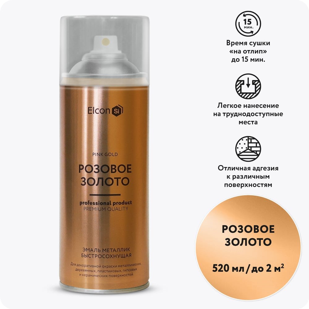 Аэрозольная краска Elcon для мебели, для декора, для металла, для пластика, для керамики, для стекла, для гипса, быстросохнущая, акриловая, розовое золото, 520 мл 00-00002991 предназначена для декоративной окраски металлических, деревянных, пластиковых, гипсовых и керамических поверхностей. Цветовая линейка, состоящая из 20 уникальных оттенков, была разработана совместно с дизайнерским бюро НН ПРЕСС и соответствуют самым актуальным трендам индустрии. Такие цвета подойдут как для покраски предметов хобби и творчества, так и для реставрации предметов быта. Внешний вид баллонов максимально приближен к цвету эмали, находящейся внутри. Указания к применению: • Окрашиваемые поверхности предварительно очистить, высушить, обезжирить, загрунтовать и отшлифовать. • Во избежание попадания следов аэрозоля рекомендуется защищать поверхности, не подлежащие окраске. • Для достижения наилучших результатов эмаль следует наносить при температуре не ниже +10°С. • Перед использованием баллон необходимо встряхивать в течение 2–3 минут. • Эмаль наносить, избегая перелива, с расстояния 25–30 см в 2–3 слоя с промежуточной сушкой 10 минут. • Время сушки «на отлип» при температуре +20°С — 15–20 минут. Время полного высыхания при температуре +20°С — 2 часа. Области применения: • Предметы декора • Мебель • Изделия из металла • Деревянные поверхности • Изделия из пластика • Поверхности из гипса • Стеклянные поверхности • Керамические изделия
