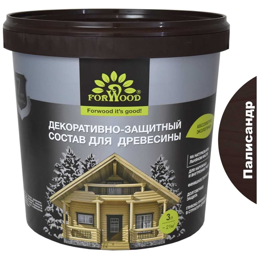 Декоративно-защитный состав для древесины Forwood ВДПФ-1601 палисандр, 3 л 4630058024473 предназначен для отделки ранее не окрашенных деревянных поверхностей (дома, заборы и т.п.). Образует долговечное финишное декоративное покрытие, подчеркивает природную фактуру древесины. Срок службы на фасаде более 7 лет. Внимание! Не рекомендуется для твердых пород древесины (например лиственница, дуб и т.д.).