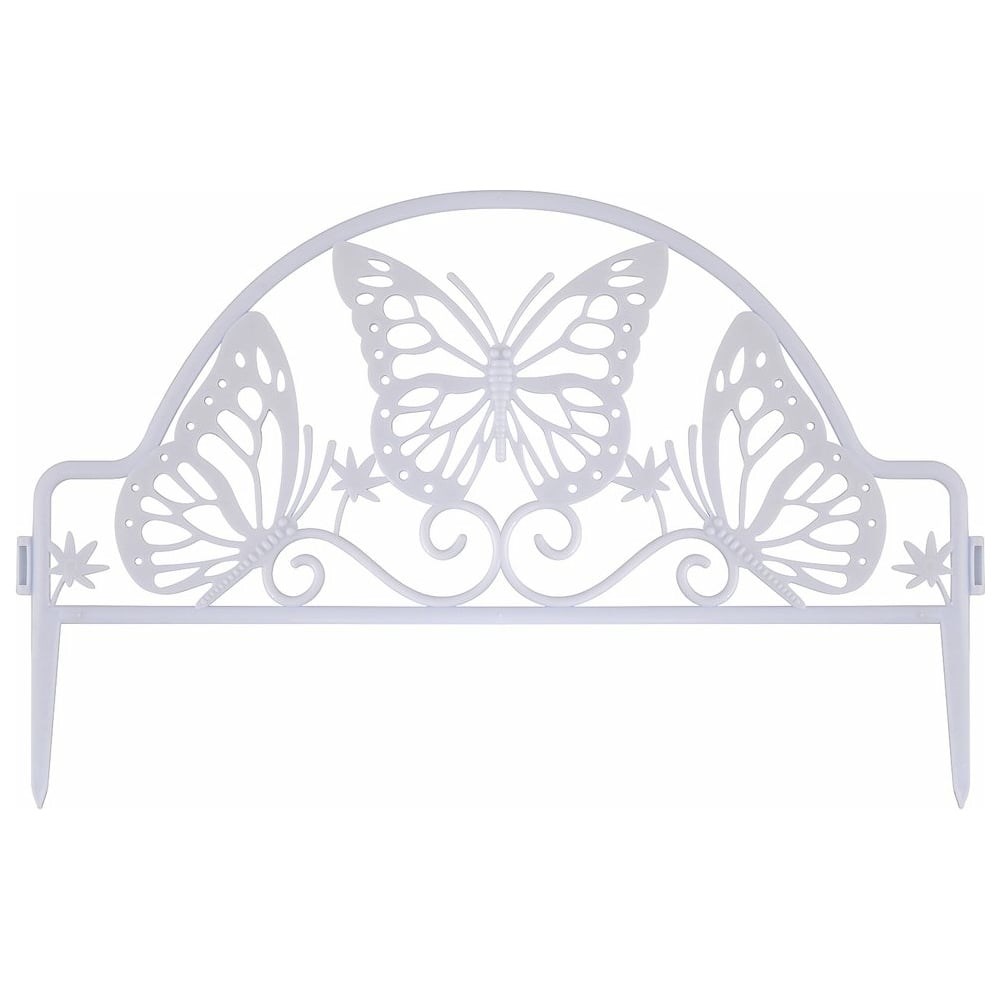 Декоративный забор для клумб МУЛЬТИДОМ Бабочки 48.5x31 см VL83-92 подчеркнет красоту цветника. Ограждение не выгорает на солнце, не боится воздействия влаги, а также защитит клумбу от мелких питомцев, гуляющих по участку. Легко и просто устанавливается, не требует использования инструментов для монтажа