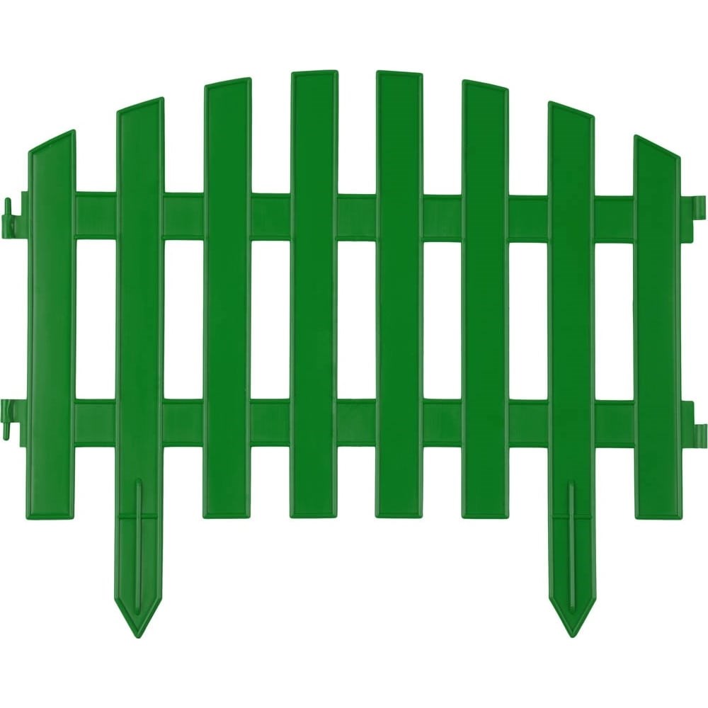 Декоративный забор GRINDA 28х300 см, зеленый 422203-G используется для украшения сада или парка. Разделение на 7 секций позволяет ограждать участки различной формы. Долгий срок службы. Выполнен из устойчивого к износу и атмосферным условиям пластика.