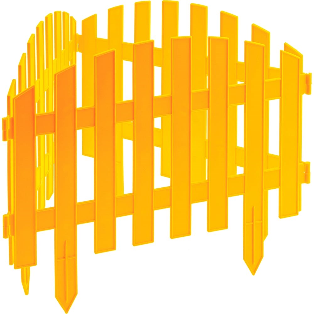 Желтый декоративный забор Palisad «Винтаж» 65010 размером 28 х 300 см, предназначен для зонирования территории. Состоит из 7 оригинальных секций общей длиной 300 см. С их помощью можно оформить клумбу, дорожку или зону отдыха, огородить грядки, деревья или кусты. Забор придаст законченный вид территории дачного участка.