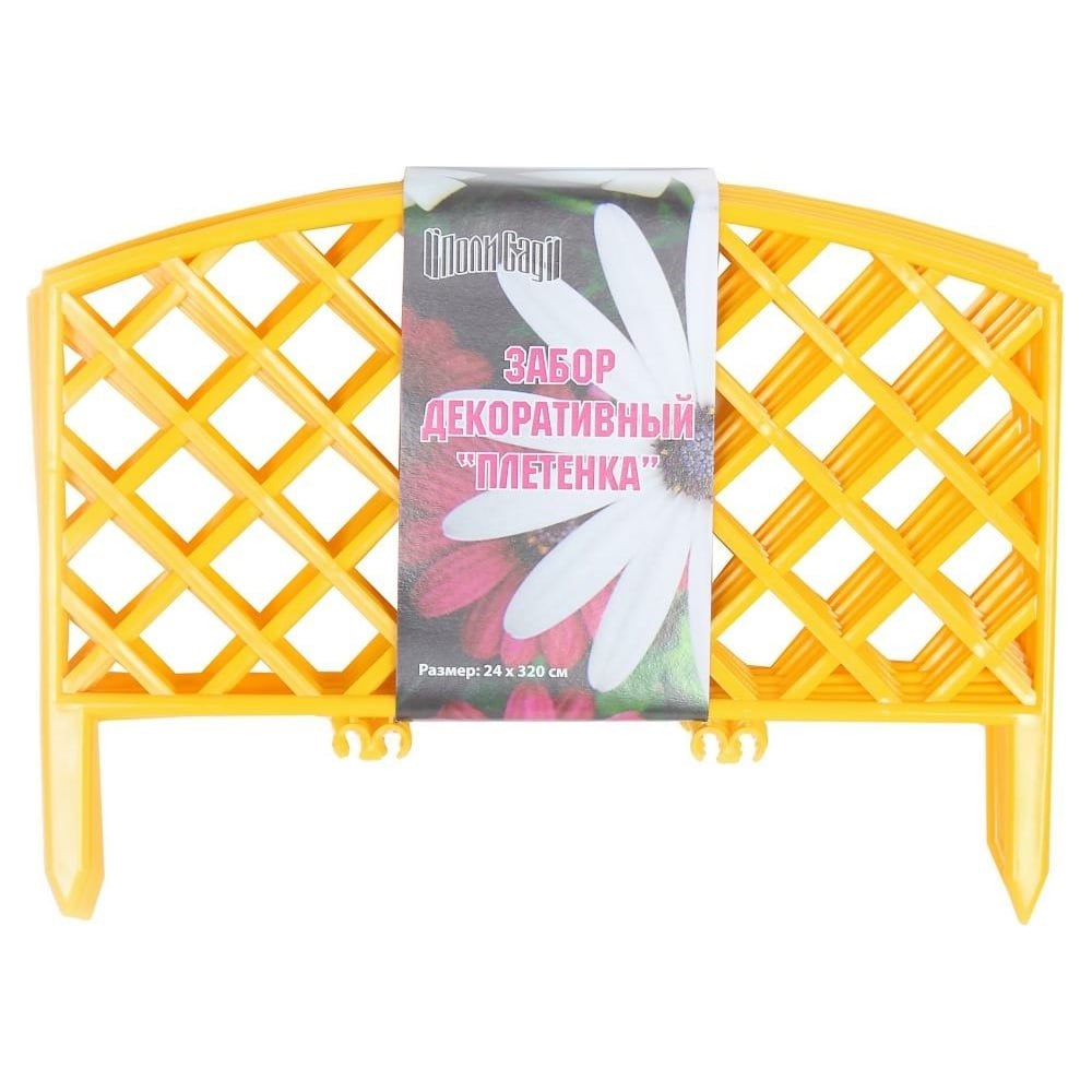 Декоративный заборчик Поли Сад №6 Плетенка желтый, 24 см/3.2 м 14670 применяется для зонирования дачного или садового участка, оформления отдельных цветников и грядок. Быстрая установка и демонтаж - части забора легко устанавливаются в почву без помощи инструментов. Собирается из модулей высотой 24 см и шириной 45 см. Общая длина декоративного заборчика 3.2 м: можно огородить одну среднюю или две маленьких клумбы Универсальность. Подходит для ограждения деревьев, детских площадок, небольших пристроек и других элементов любой геометрической формы. Надежность. Садовый забор изготовлено из полипропилена — экологически безопасного материала, который не выделяет токсичных веществ в почву, хорошо переносит жару, холод и повышенную влажность.
