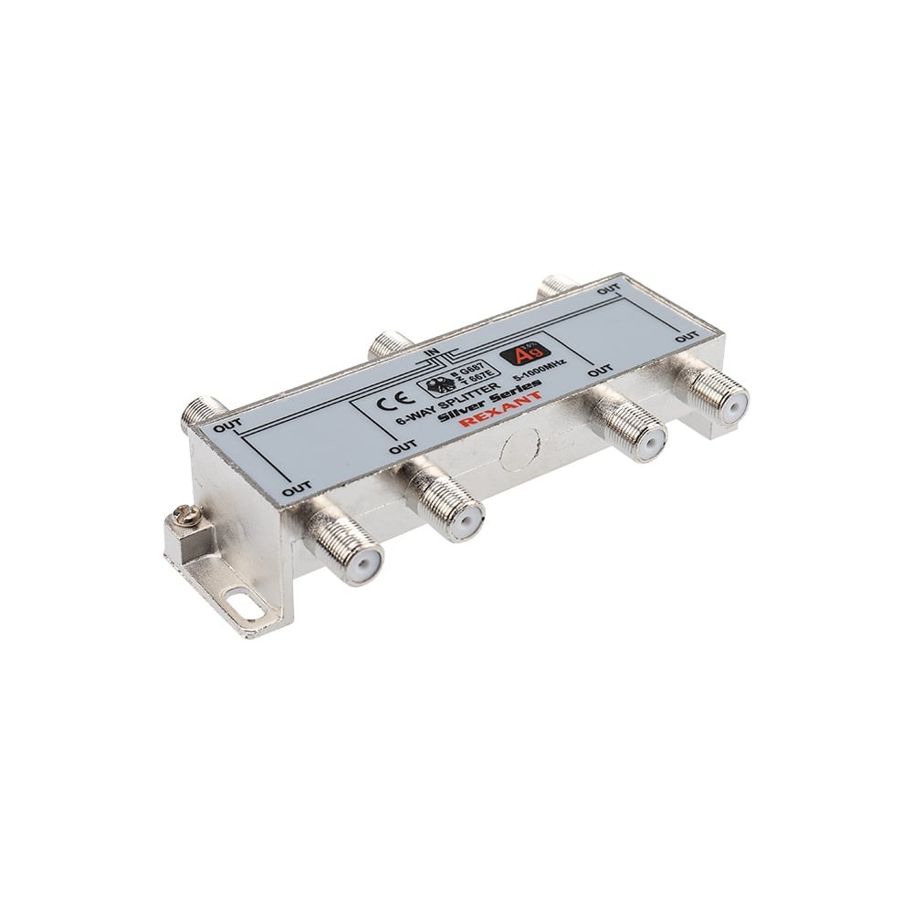 Телевизионный делитель или сплиттер предназначен для телевизионных систем и используется в домах и квартирах, где требуется подключить несколько телевизоров к одной антенне.Сплиттер распределяет поступающий на вход сигнал поровну на его выходы, что обеспечивает одинаково четкое изображение на всех подключенных устройствах.Устройство оснащено шестью выходами для сигнала и подключается с помощью стандартных F-разъемов. В комплекте поставляется 7 F-разъемов.Пайка внутри делителя осуществляется с использованием серебросодержащего припоя, что позволяет получить сигнал высокого качества и увеличить надежность. Делитель имеет надежный металлический корпус.Данный делитель подходит для сигналов с частотой 5-1000 МГц, что соответствует стандартному эфирному телевидению.