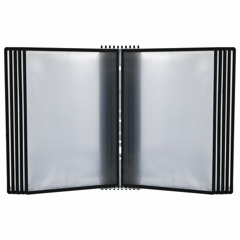 10 двусторонних панелей позволяют одновременно разместить до 20 листов формата А4. Опора и рамка демосистемы изготовлены из прочного АБС-пластика. Прозрачный карман из ПВХ обладает антибликовыми свойствами и надежно защищает документы от внешних воздействий.