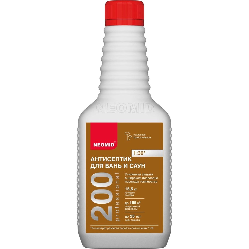 Деревозащитный состав для бань и саун NEOMID 200 0,5 л Н-200-0,5/к1:30 представляет собой антисептическую пропитку для защиты древесины в помещениях с частым перепадом температур и повышенной влажностью (бани, сауны).Состав обеспечивает сверхвысокую защиту поверхности от гниения, плесневых грибов.Продукт не изменяет структуру древесины, а также не препятствует дальнейшей обработке, склеиванию или окраске.Возможно применение в качестве антисептического грунта перед покраской лаком.