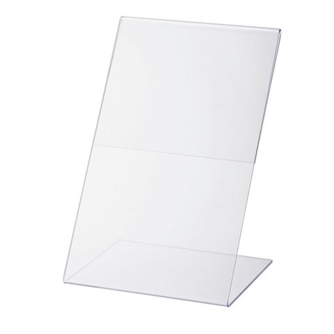 Изготовлена из прозрачного акрилового стекла толщиной 1 мм. Имеет размер 130х80 мм. Максимальная толщина вставки составляет 1,5 мм, глубина основания держателя информации - 65 мм, ширина ножки - 1 мм. 20 штук в комплекте.