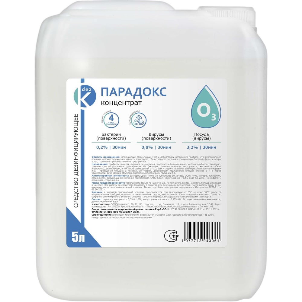 Дезинфицирующее средство ООО Континент Парадокс