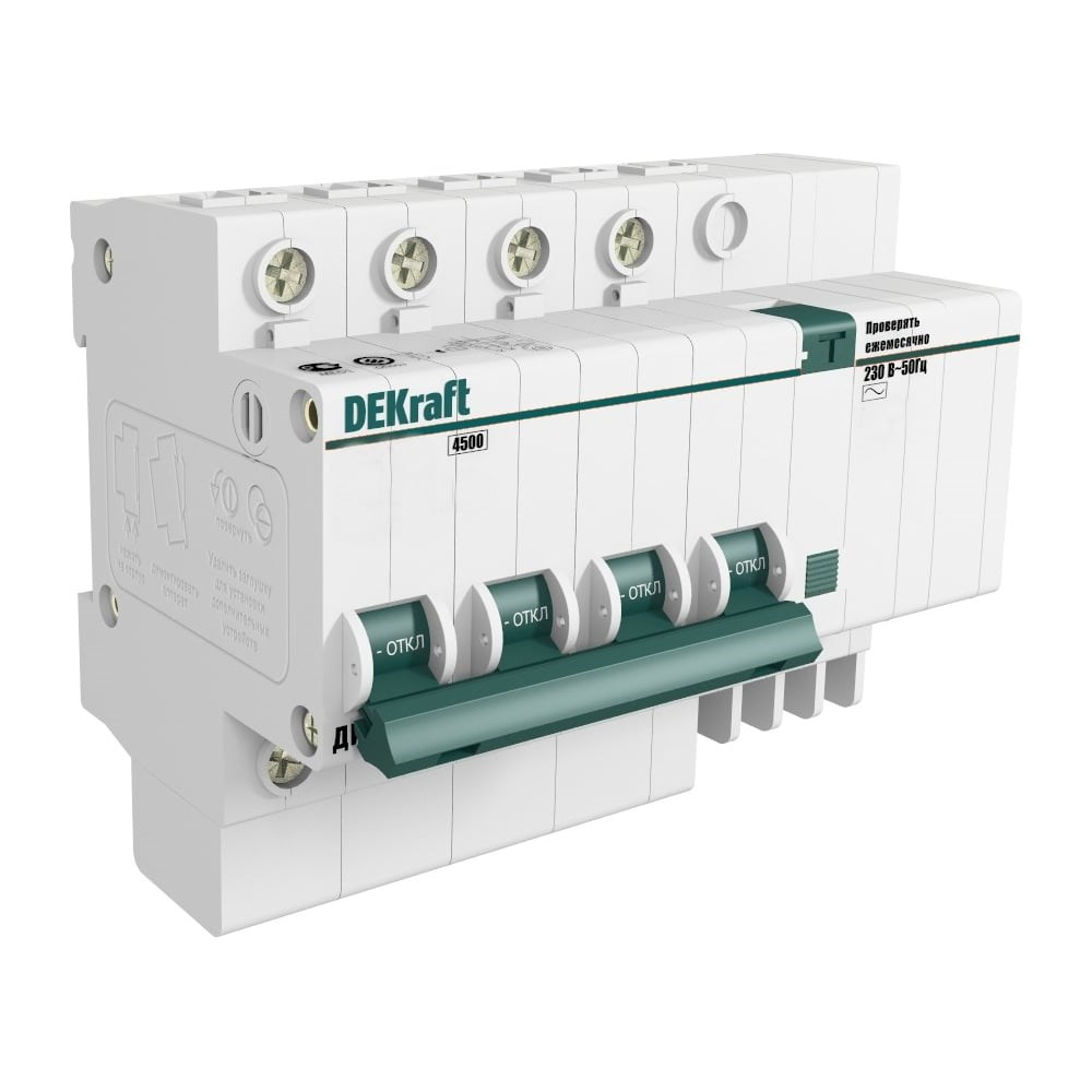 Дифавтомат DEKraft ДИФ-101 4п 25A 30мА 4.5кА AC 6.5мод.