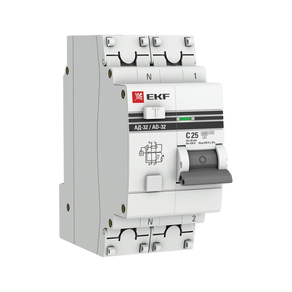 Дифавтомат EKF АД-32 PROxima 1п+N 2мод. C 25A 30mA AC 3kA
