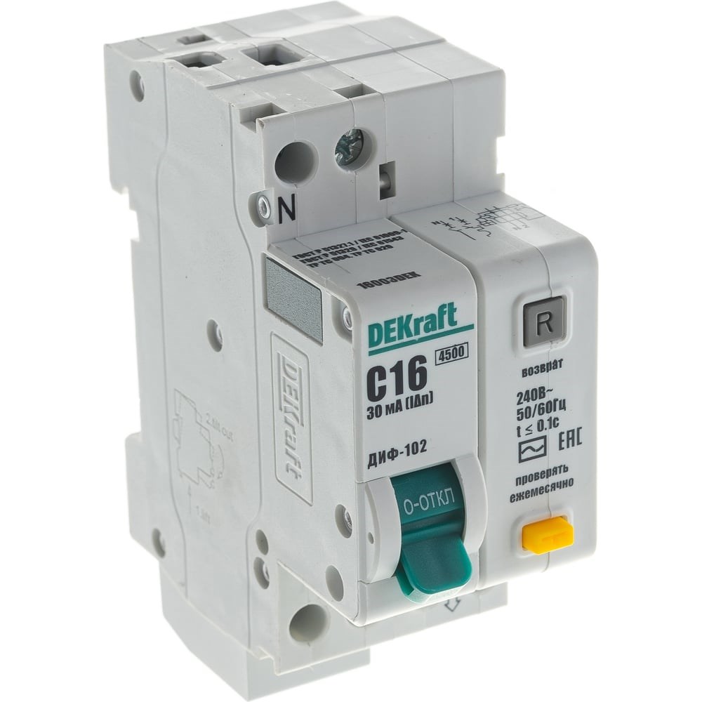 Дифференциальный автомат DEKraft ДИФ-102 1п+N 16A 30мА 4.5кА AC 2мод.