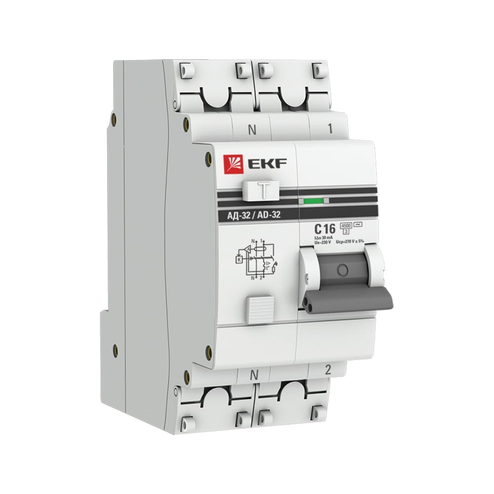 Дифференциальный автомат EKF АД-32 1п N 2мод. C 16A 30mA AC 3kA