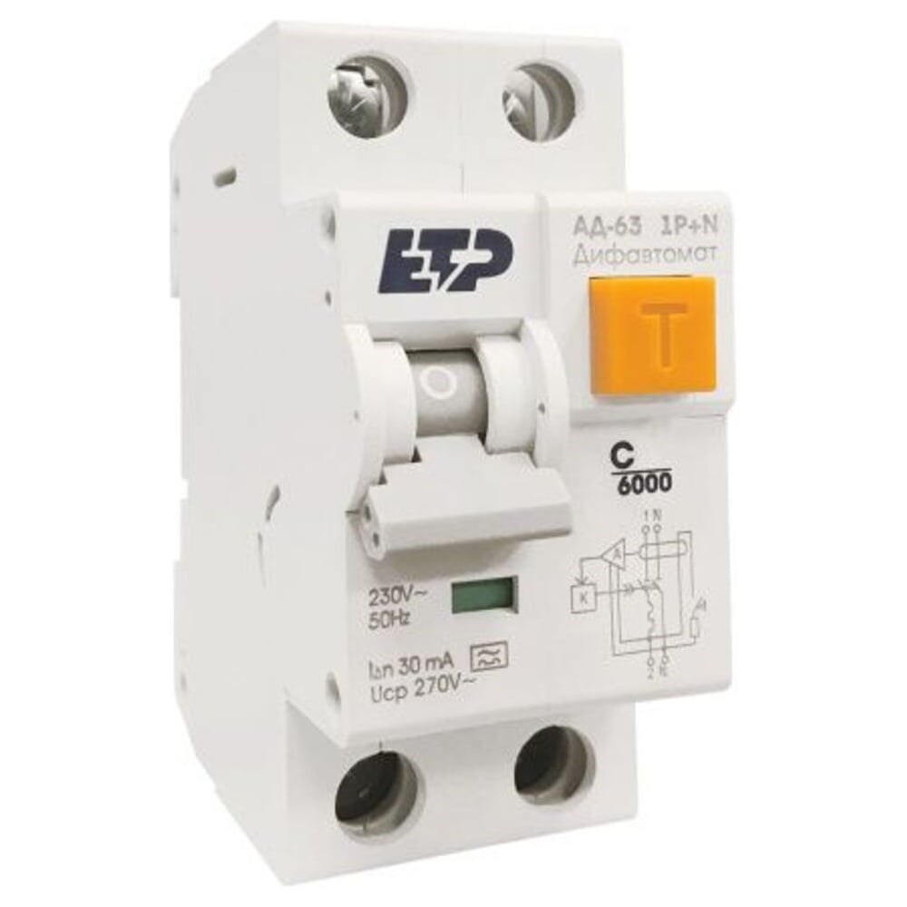 Модульный автоматический выключатель дифференциального тока АД-63 1P+N 32A/30мА (хар. C, тип A, защита 270В) 6кА ETP является универсальным устройством и предназначен для обеспечения безопасности и предотвращения возгорания: при повреждении изоляции проводника; при появлении тока утечки; защита электрических установок от перегрузок и коротких замыканий.Дифавтомат АД-63 1P+N 32A/30мА (хар. C, тип A, защита 270В) 6кА ETP широко применяется при строительстве домов, многоквартирных жилых комплексов, торговых центров, коттеджей и социальной инфраструктуры. Благодаря разнообразию моделей модульных автоматических выключателей дифференциального тока ETP можно подобрать подходящий вариант для решения практически любой задачи.