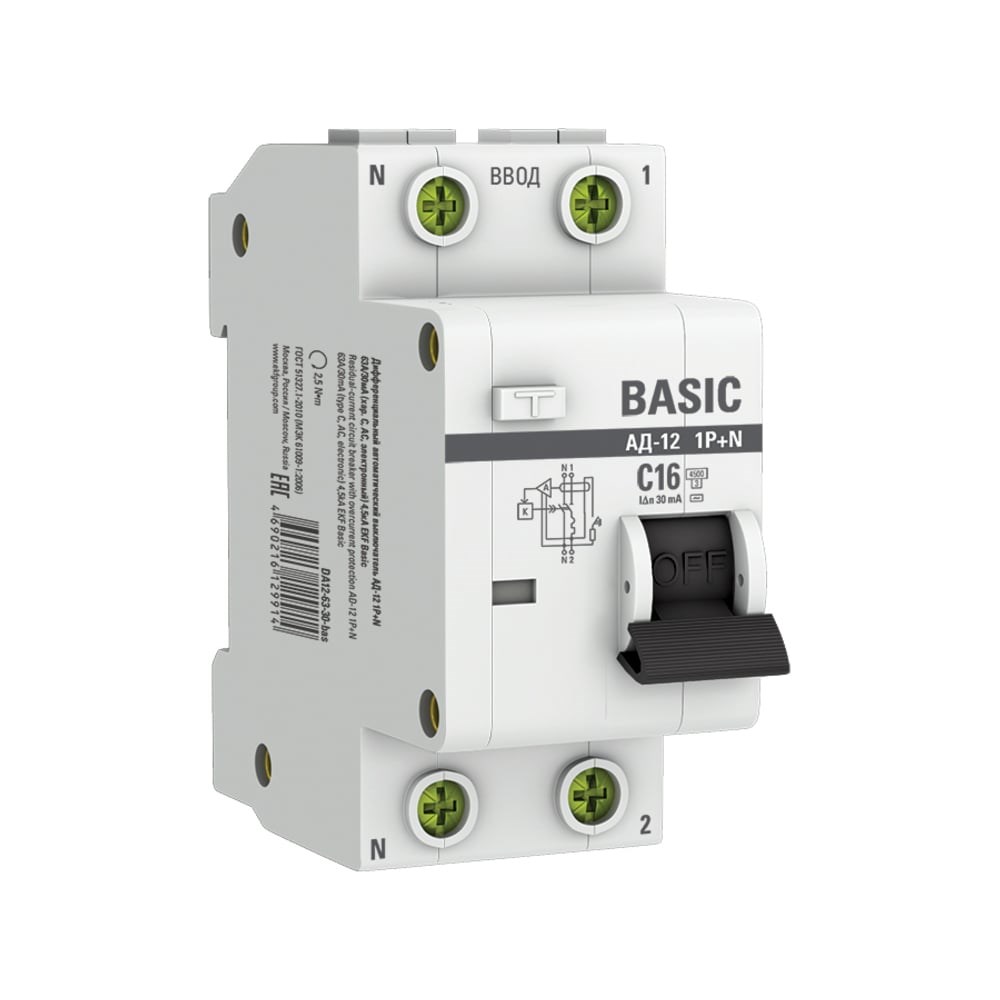 Выключатели автоматические дифференциального тока (дифавтоматы) АД-12 EKF BASIC – это аппараты, сочетающие функции автоматического выключателя с устройством защитного отключения. При обнаружении автоматическим выключателем в защищаемом участке сети тока утечки (повреждения) на землю или сверхтока (тока перегрузки или короткого замыкания) происходит срабатывание устройства, приводящее к отключению защищаемой сети.ДОПОЛНИТЕЛЬНЫЕ ТЕХНИЧЕСКИЕ ХАРАКТЕРИСТИКИ:Предельная коммутационная способность: 4,5 кАКоммутационная износостойкость: 4 000 цикловМеханическая износостойкость: 8 000 цикловСечение подключаемого провода: От 1 до 25 мм2Момент затяжки: 2,5 Н мНоминальное фазное напряжение частотой 50 Гц, В 240Номинальное линейное напряжение частотой 50 Гц, В 415Характеристика отключения СТип срабатывания по дифференциальному току АСМеханизм ЭлектронныйКоличество полюсов 1Р + NРасположение нейтрали: С левой стороныСтепень защиты IP20Степень защиты аппарата в модульном шкафу IP40Время отключения при номинальном отключающем дифференциальном токе, не более 0,04 секКлиматическое исполнение УХЛ4Категория применения: А