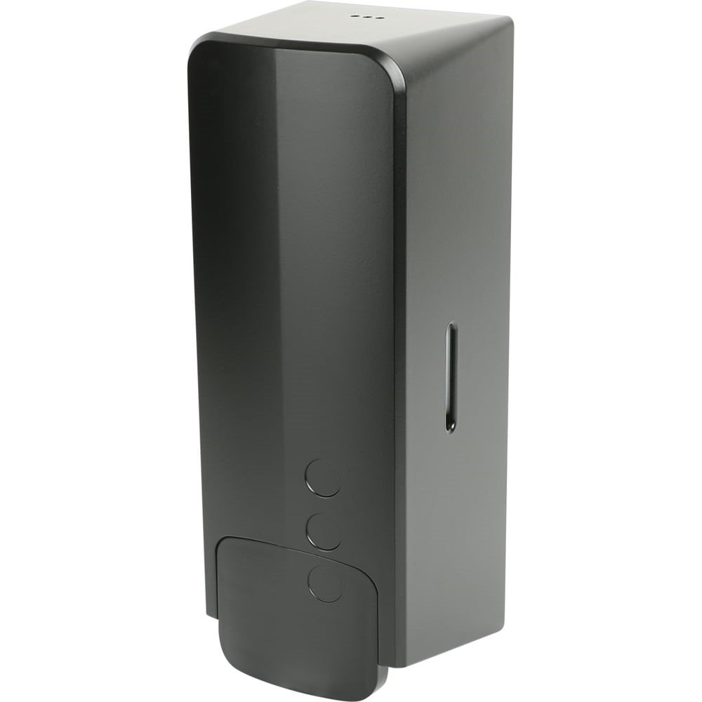 Ручной кнопочный дозатор мыла. Подходит для жидкого мыла и антисептика на гелевой основе. Корпус из ударопрочного ABS-пластика чёрного цвета. Со смотровым стеклом и предохранительным замком. Подходит для общественных мест с большой проходимостью. Варианты дозировки мыла: Позиция 1: 1,5 мл/доза Позиция 2: 1 мл/доза Позиция 3: 0,5 мл/доза Также доступен в белом исполнении (NOFER 03040.W).
