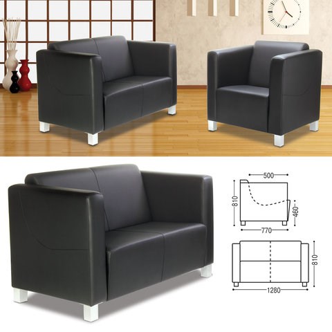 Диван мягкий двухместный "Милано", 810х1280х770 мм, c подлокотниками, экокожа, черный