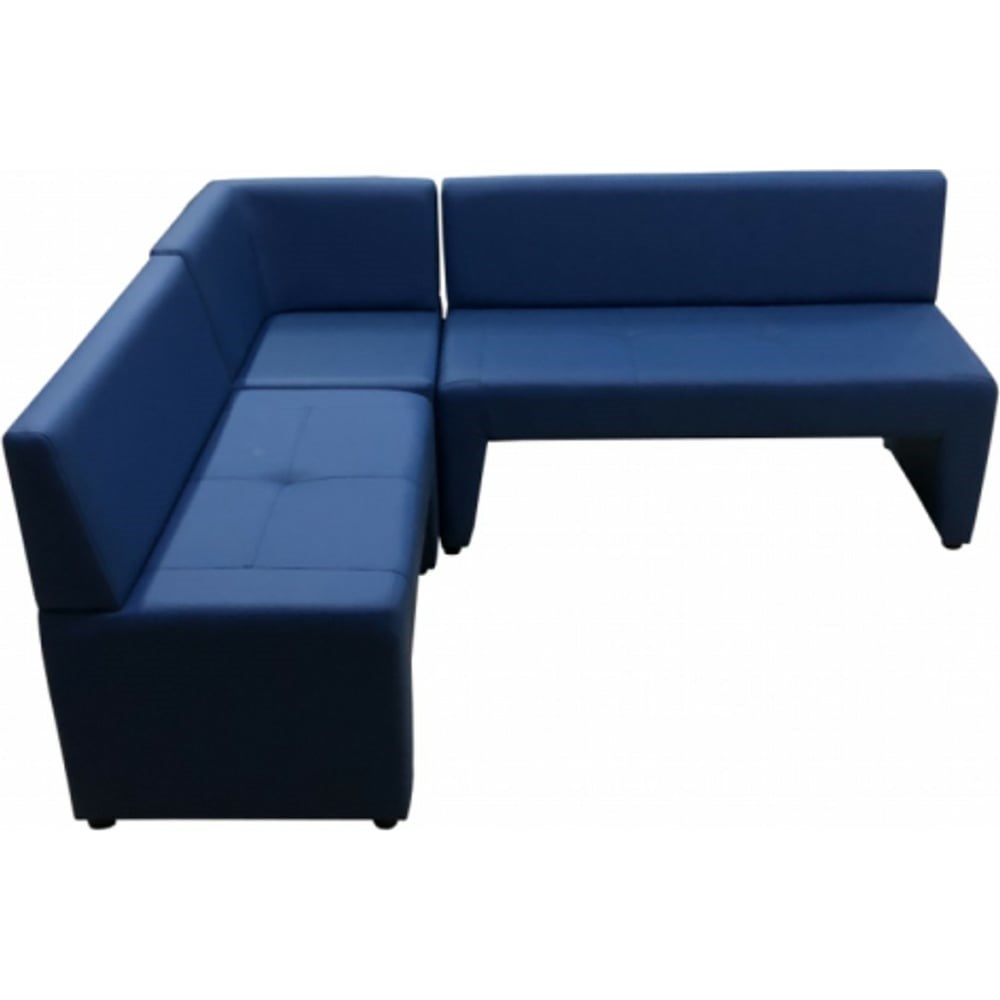 Угловой диван Мягкий офис Ритм синий РТ401СН предназначен для офиса или дома. За счет эргономичного дизайна удобен даже при длительном сидении. Имеет угловую форму, что позволяет сэкономить или зонировать пространство. Диван выполнен в современном стиле, поэтому впишется в любой интерьер. Дополнительные технические характеристики: Тип: угловой, нераскладной. Механизм: нет. Ящик для белья: нет. Габариты (в/ш/г): 79x179x139 см. Размер посадочного места (г/в): 42x49 см. Наполнитель: высокой плотности ППУ. Ножки: пластик, 5 см.