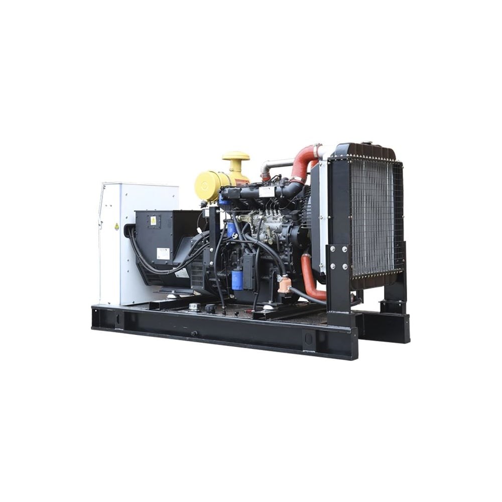Дизель генератор открытого типа используется как основной или резервный источник переменного трехфазного электрического тока напряжением 230/400 В и частотой 50 Гц для электроснабжения средних промышленные предприятий, строительных объектов, социальных учреждений, гостиниц, банков, небольших торговых центров. Запуск и остановка электростанции по первой степени автоматизации осуществляются в ручном режиме оператором. Использование многоцилиндрового дизельного двигателя большого объема с радиаторным охлаждением и частотой оборотов 1500 об/мин обеспечивает высокую надежность и ремонтопригодность.