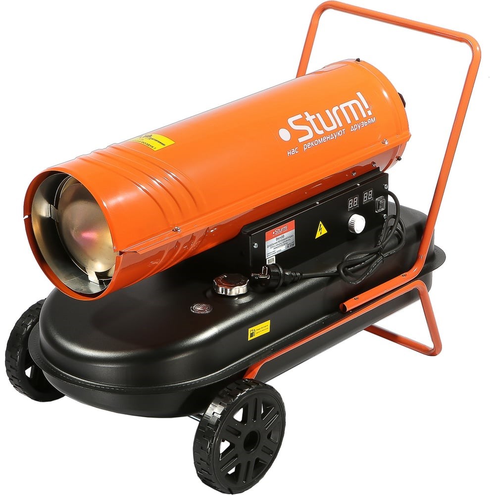 Дизельная тепловая пушка Sturm! DKH30 - мощный обогреватель с объемом бака 35 литров. Форма корпуса моделирует направленный горячий поток воздуха при обогреве нежилых помещений и открытых рабочих пространств даже в самых суровых климатических условиях. Уровень КПД прибора близок к 100%, а тепловая мощность достигает 30 кВт.