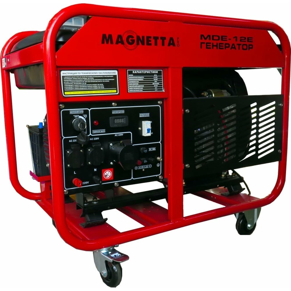 Дизельный генератор MAGNETTA MDE-12E представляет собой удобный источник аварийного питания. Также, благодаря высокой мощности, его можно использовать в качестве основного источника для дома или небольшой мастерской. Изделие имеет открытое исполнение - обеспечивает быстрый отвод теплого воздуха. Генератор легко запустить благодаря встроенной системе зажигания.