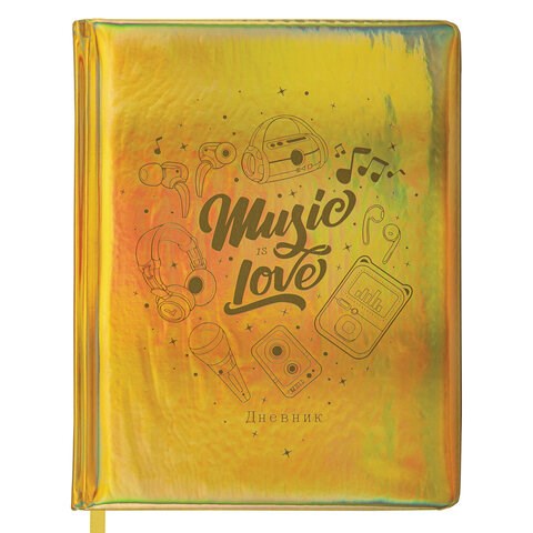 Дневник 1-11 класс 48 л., кожзам (твердая с поролоном), фольга, BRAUBERG HOLIDAY, "Музыка", 106914