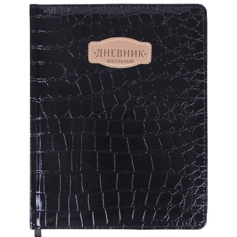 Дневник 1-11 класс 48 л., кожзам (твердая с поролоном), нашивка, BRAUBERG "CROCODILE", черный, 105481