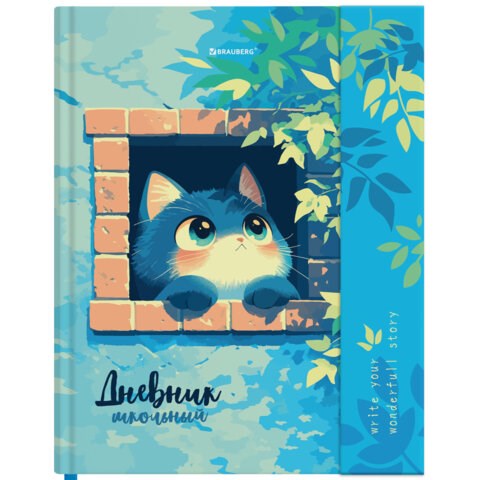 Дневник 1-11 класс 48 л., твердый, BRAUBERG, матовая ламинация, магнитный клапан, закладка-ляссе, с подсказом, "Котик", 107244