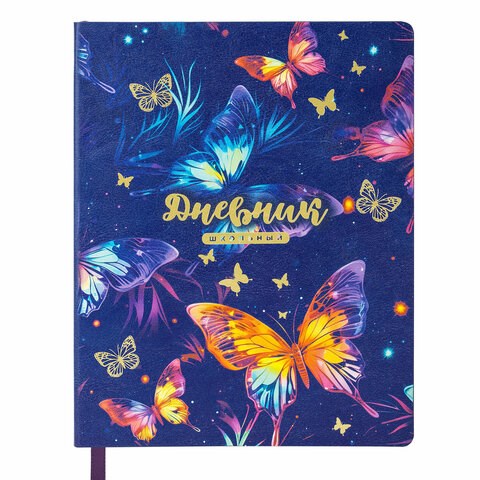 Дневник 1-4 класс 48 л., кожзам (гибкая), печать, фольга, ЮНЛАНДИЯ, "Бабочки", 106924