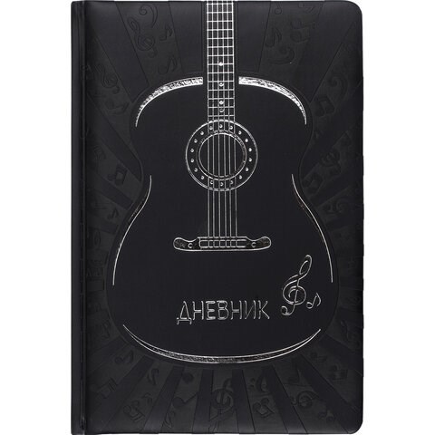 Дневник для музыкальной школы 140х210 мм, 48 л., обложка кожзам твердая, фольга, BRAUBERG, справочный материал, черный, 105502