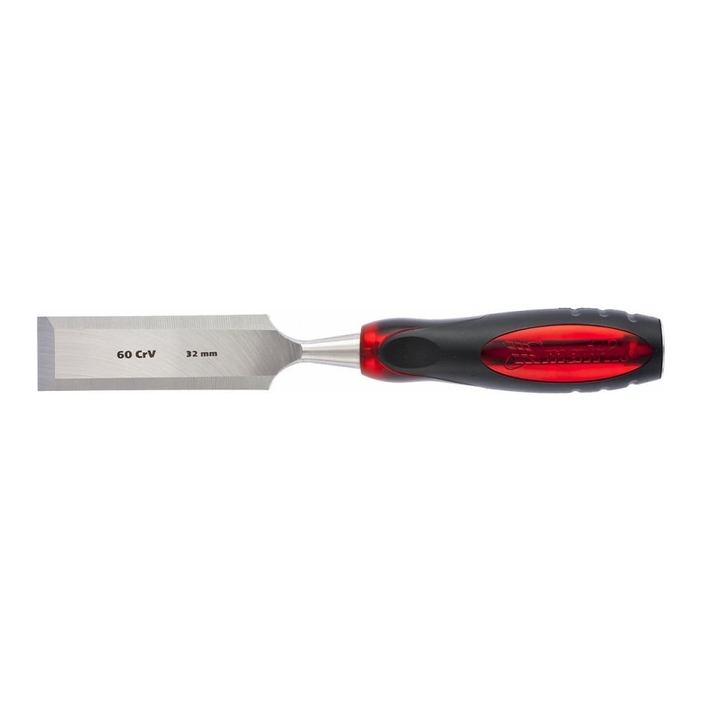 Долото-стамеска Matrix «Тигровый глаз» 24521 с полотном шириной 32 мм и двухкомпонентной обрезиненной рукояткой используется в столярном и плотницком деле, в производстве мебели. Позволяет вырезать углубления, формировать пазы, зачищать шипы и гнезда, снимать фаски. Инструмент выдерживает удары киянкой или молотком, т. к. металлический затыльник защищает его от деформации. Долото относится к профессиональному ручному инструменту, но может применяться и в домашних условиях.