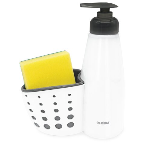 Дозатор для моющего средства+органайзер кухонный Laima Home – Ваш надежный помощник на кухне и в ванной. Вместительный дозатор для жидкого мыла или для моющего средства выполнен из качественного пластика и оснащен держателем для губки. Моющее средство подается при помощи стандартного помпового механизма.