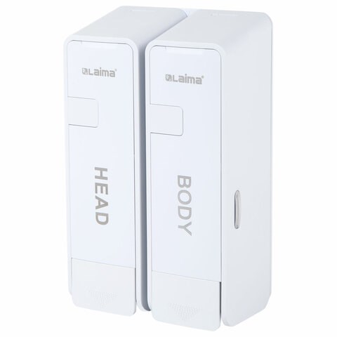 Дозатор двойной 2х0,38 л для жидкого мыла/шампуня/геля LAIMA ULTRA, НАЛИВНОЙ, белый, 609107, MD-9029W-2