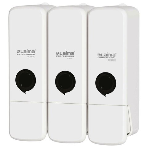 Дозатор тройной 3 х 0,3 л для жидкого мыла/шампуня/геля LAIMA PREMIUM, НАЛИВНОЙ, белый, 609500