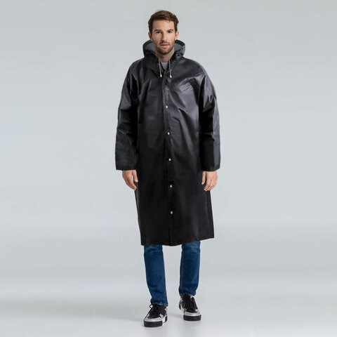 Дождевик-плащ черный на кнопках, EVA, многоразовый, прочный, универсальный размер, Komfi, 25509