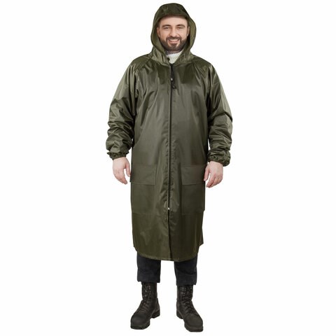 Дождевик-плащ хаки С КАРМАНАМИ многоразовый на молнии, размер 56-58, рост 170-176, ГРАНДМАСТЕР, 610884