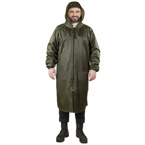 Дождевик-плащ хаки С КАРМАНАМИ многоразовый на молнии, размер 60-62, рост 170-176, ГРАНДМАСТЕР, 610885