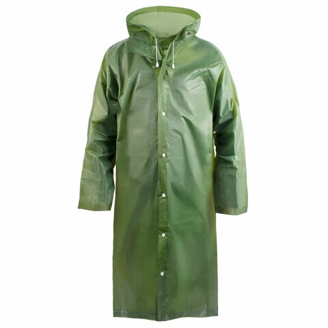 Дождевик-плащ зеленый на кнопках, EVA, многоразовый прочный, универсальный размер, KOMFI, EVA005G