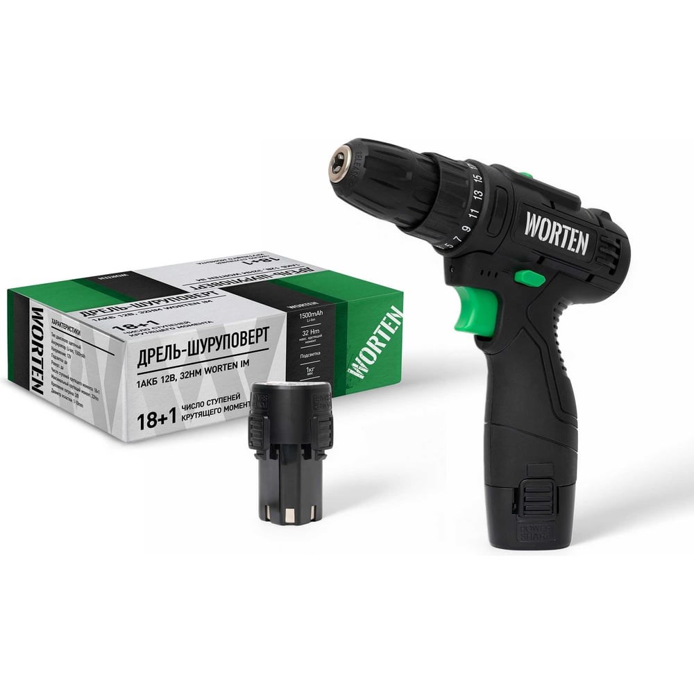 Дрель шуруповерт WORTEN 1АКБ 12В, 32Hm