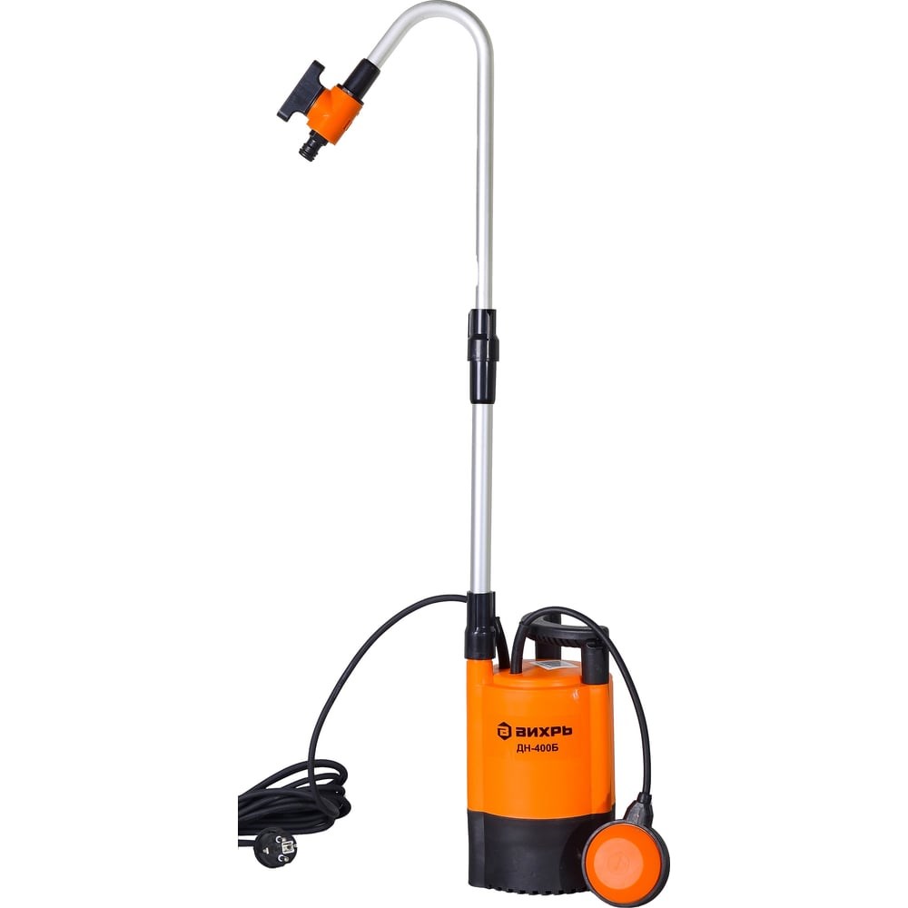 Дренажный насос Вихрь ДН-400Б предназначен для откачивания и отведения чистой воды. Насос рассчитан на 20 включений за час. Насосы этой серии оснащаются асинхронными однофазными электрическими двигателями, которые отличаются надёжностью и не требуют технического обслуживания. Мощность двигателя – 400 Вт. Максимальная водоподача – 100 л/мин. Напор – до 11 м. Допустимая глубина погружения – 7 м. Диаметр пропускаемых частиц – не более 1 мм. Выходное отверстие – 3⁄4". Модель может применяться для откачивания воды из подвалов, а также для поднятия её из колодцев.В комплектацию ДН-400Б входят набор трубок и поплавковый выключатель, обеспечивающий защиту агрегата от сухого хода, который можно настроить на разную глубину срабатывания. Конструкция герметичная. Степень защиты от воды – IPX8, что означает возможность стабильно функционировать в полностью погружённом состоянии. Питание дренажного насоса осуществляется от бытовой электросети – 220 В, 50 Гц.