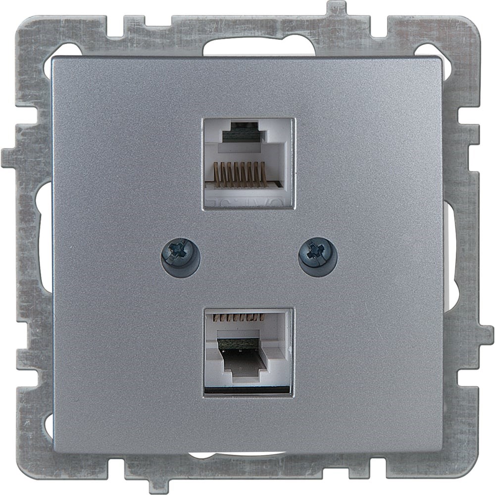 Механизм 2-местной компьютерной розетки Nilson СУ RJ45 САТ6, TOURAN-ALEGRA-THOR серебро 24130446