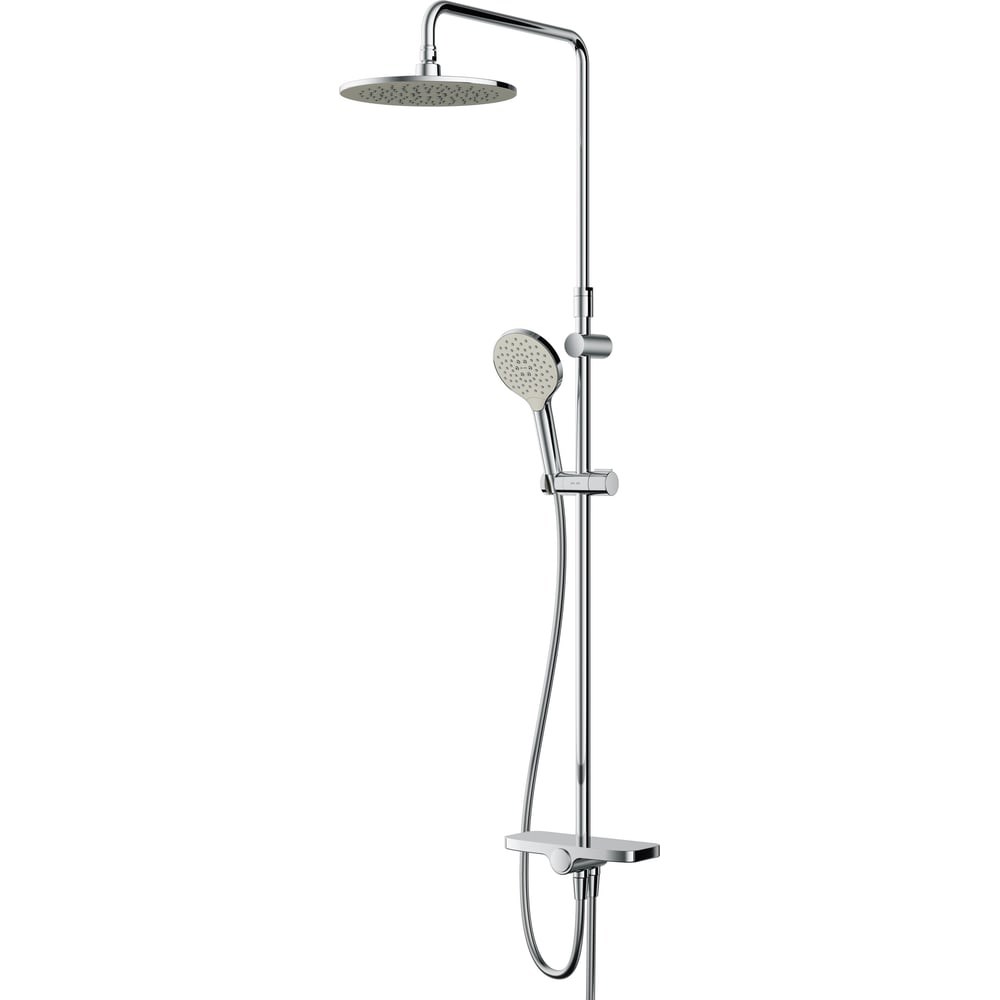 Душевая система AM.PM Like верхний душ 250 мм, ручной душ 120 мм, 3 функции, душевая штанга F0780200 стильного дизайна. Премиальные размеры и продуманные детали, увеличенный диаметр душевых леек (верхний душ 254 мм и ручной душ 120 мм) позволит ощутить преимущества тропического душа, тогда как увеличенная длина шланга 1750 мм обеспечит свободу движений во время принятия душа. Телескопическая поворотная штанга регулируется по высоте в диапазоне от 1030 до 1460 мм., обеспечивая комфорт для людей любого роста, а шаровой шарнир в держателе верхнего душа позволяет регулировать угол его наклона. Нижнее крепление штанги выполнено в виде полочки, а переключатель верхний-ручной душ является ее продолжением. Нажав на него вы можете менять источник потока воды от ручной лейки к верхнему душу.
