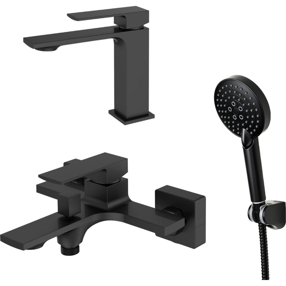 Набор смесителей для ванной комнаты Lutz от немецкой компании Orange – отличный выбор для интерьера в стиле минимализм.Латунное изделие устойчиво к коррозии и высоким температурам, а черное матовое покрытие делает незаметными разводы и высохшие капли. Керамический картридж обеспечивает долговечность изделия, стабильную подачу воды и мощный напор. Излив оснащен пластиковым аэратором, он создает ровную мощную струю и легко очищается от известкового налета.В комплекте душевой гарнитур: душевая лейка d 110 мм (3 режима струи, защита от известкового налета RUB CLEAN, с системой AIR IN), шланг в металлической оплетке 1500 мм с защитой от перекручивания, настенный держатель лейки с регулировкой угла наклона.