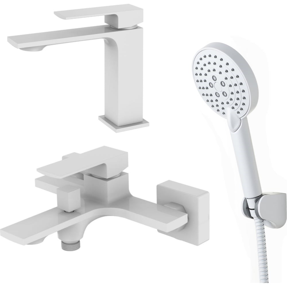 Набор смесителей для ванной комнаты Lutz от немецкой компании Orange – отличный выбор для интерьера в стиле минимализм.Латунное изделие устойчиво к коррозии и высоким температурам, а белое глянцевое покрытие делает незаметными разводы и высохшие капли. Керамический картридж обеспечивает долговечность изделия, стабильную подачу воды и мощный напор. Излив оснащен пластиковым аэратором, он создает ровную мощную струю и легко очищается от известкового налета.В комплекте душевой гарнитур: душевая лейка d 110 мм (3 режима струи, защита от известкового налета RUB CLEAN, с системой AIR IN), шланг в металлической оплетке 1500 мм с защитой от перекручивания, настенный держатель лейки с регулировкой угла наклона.