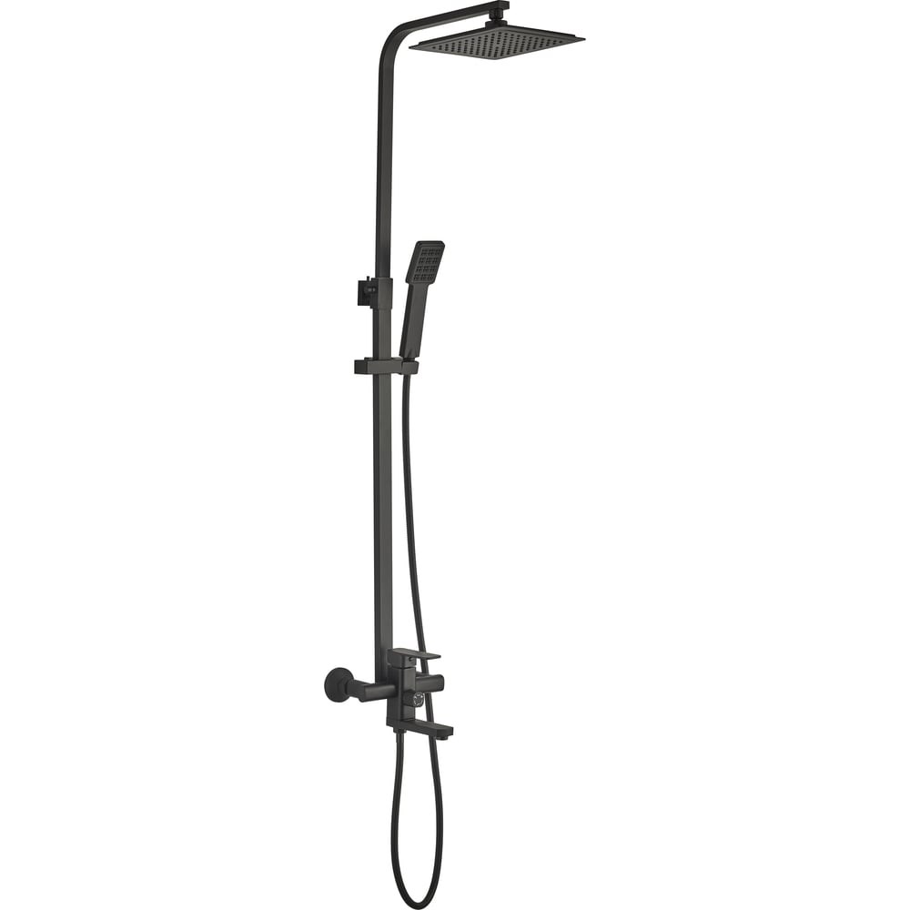 Душевая стойка-зонт со смесителем Rainsberg черный R9004H - дизайн стойки разработан с учетом актуальных тенденций, поэтому она идеально впишется во многие популярные стили. По высоте регулируется верхний душ и ручной душ. Расстояние от стены до корпуса смесителя - 6 см, полная длина от стены до конца излива - 21 см, вынос излива - 10 см. Высота корпуса - 14 см, длина ручки - 11 см. Длина стойки - 88 см, расстояние от стены до тропической лейки - 35 см.