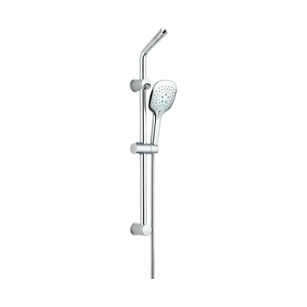 Душевой гарнитур Orange OS084 в цвете глянцевый хром: ручной душ 120х130 мм (3 режима) на гибком полутораметровом шланге (в металлической оплетке) с защитой от перекручивания. Держатель ручного душа на штанге с регулировкой угла наклона и по высоте, а также предусмотрен держатель верхний для ручного душа. Штанга 750 мм с подвижным держателем (возможность установки в старые отверстия). Форсунки ручного душа с функцией легкого очищения от известкового налета. Система AIR IN обеспечивает увеличенный напор и вместе с тем сокращает расход воды.