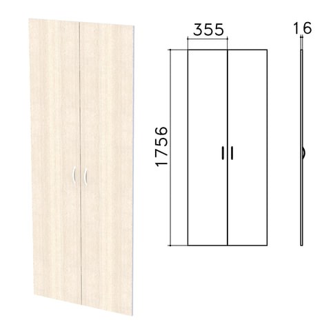 Дверь ЛДСП высокая "Бюджет", КОМПЛЕКТ 2 шт., 355х16х1756 мм, дуб шамони светлый, 402880-430